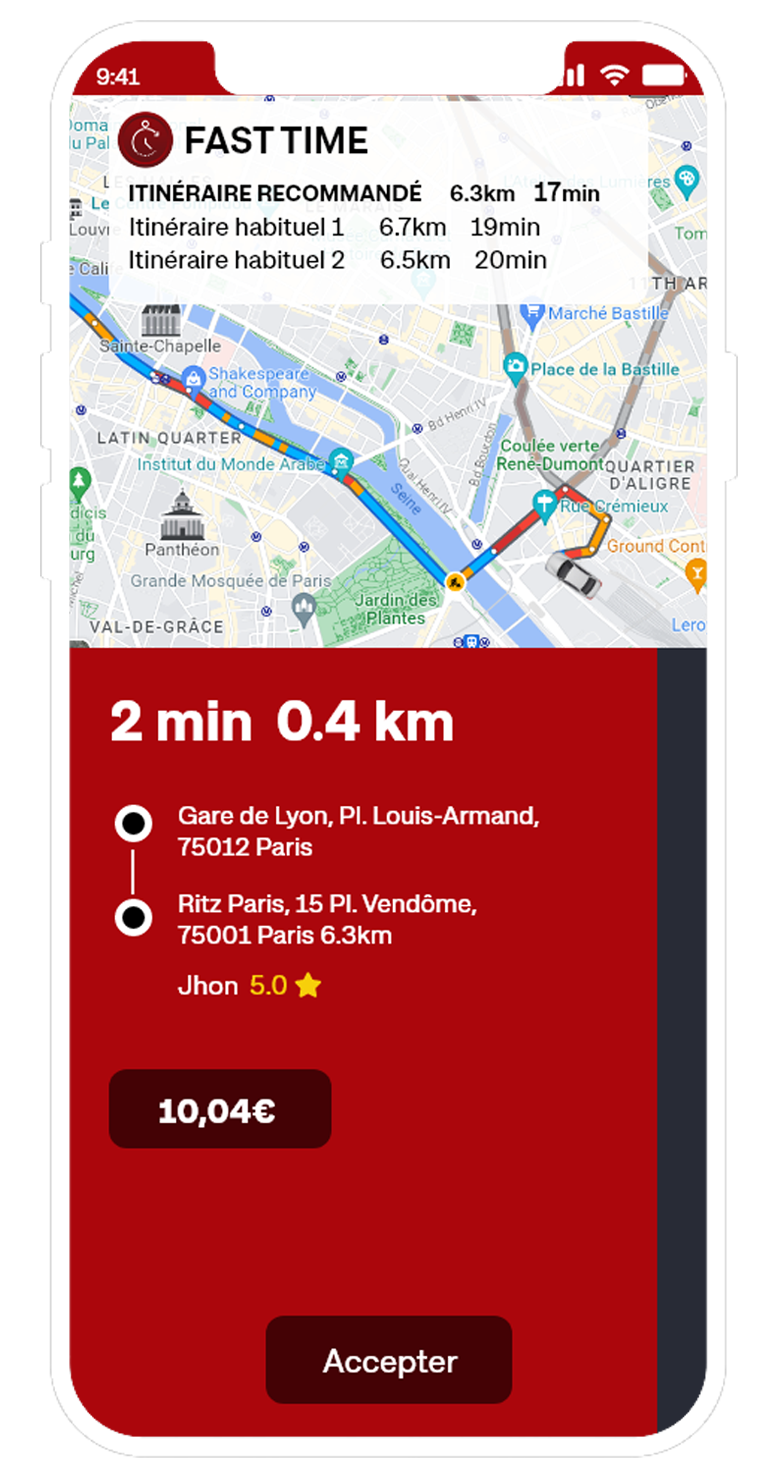 L'application mobile nouvelle et innovante permet aux chauffeurs VTC d'optimiser leurs déplacements et d'avoir une estimation précise du temps et de la distance nécessaire pour aller d'un point à un autre.