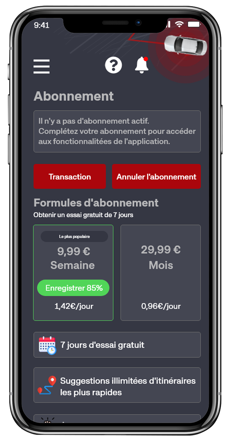 Choisissez votre abonnement pour optimiser vos déplacements et obtenir une estimation précise du temps et de la distance nécessaire pour aller d'un point à un autre.
