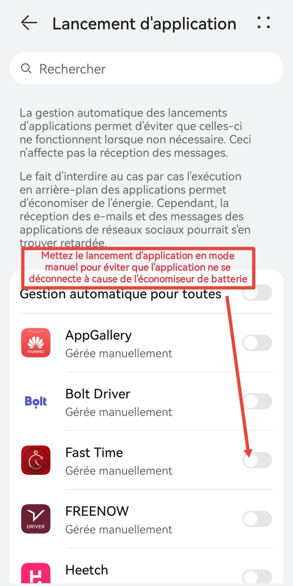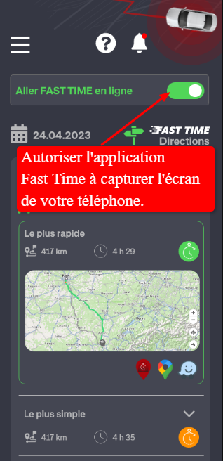 Passez en ligne sur l'application ID2solutions et laissez la en arrière plan en attendant une prochaine course.