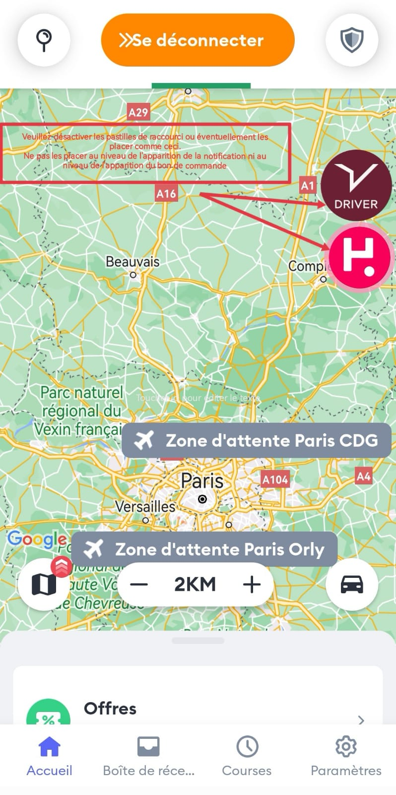 Dans l'application ID2solutions, activez les notifications afin d’obtenir la durée de chaque course proposée par vos applications de mise en relation.
