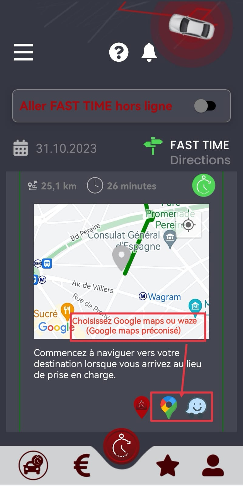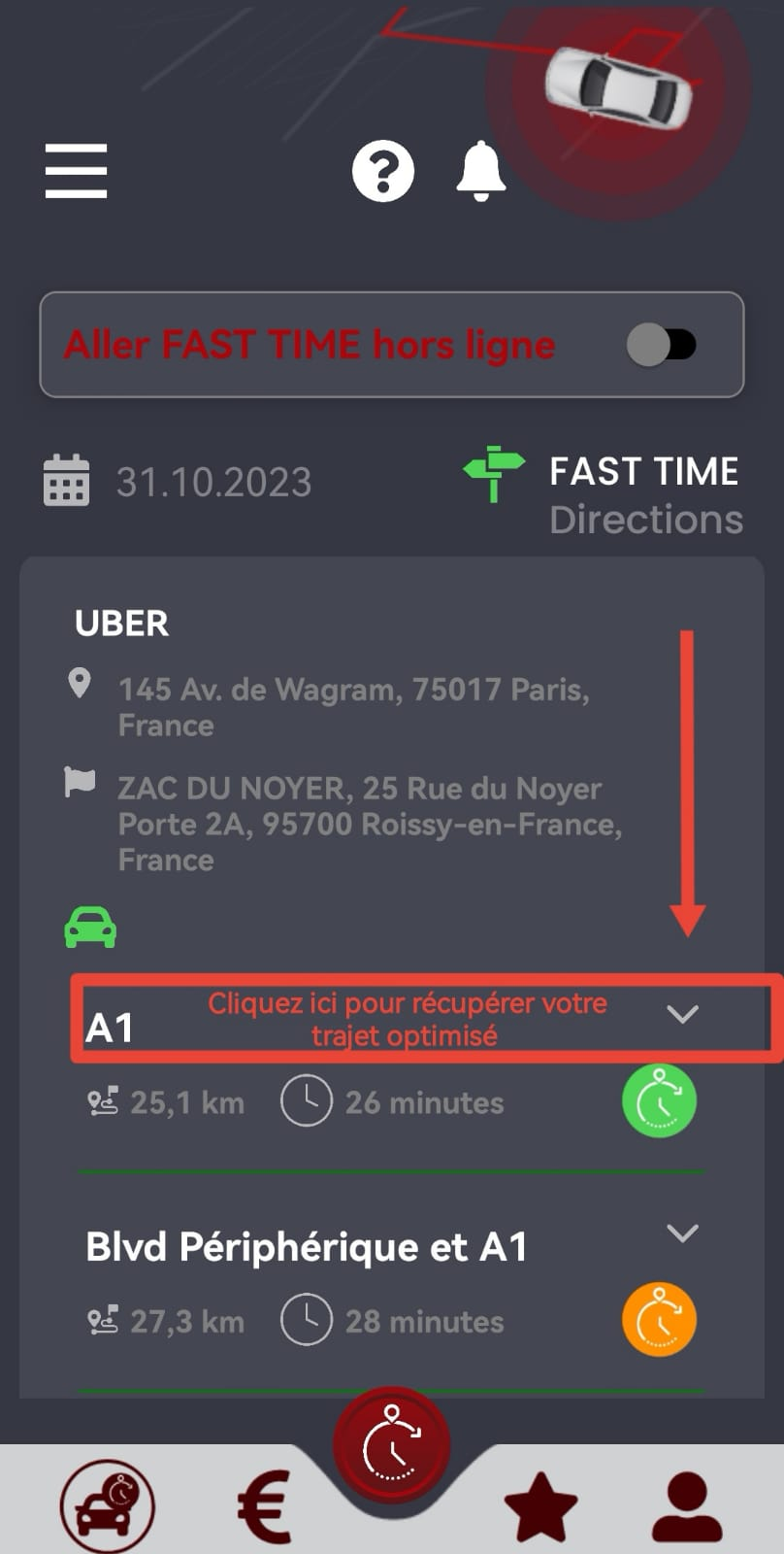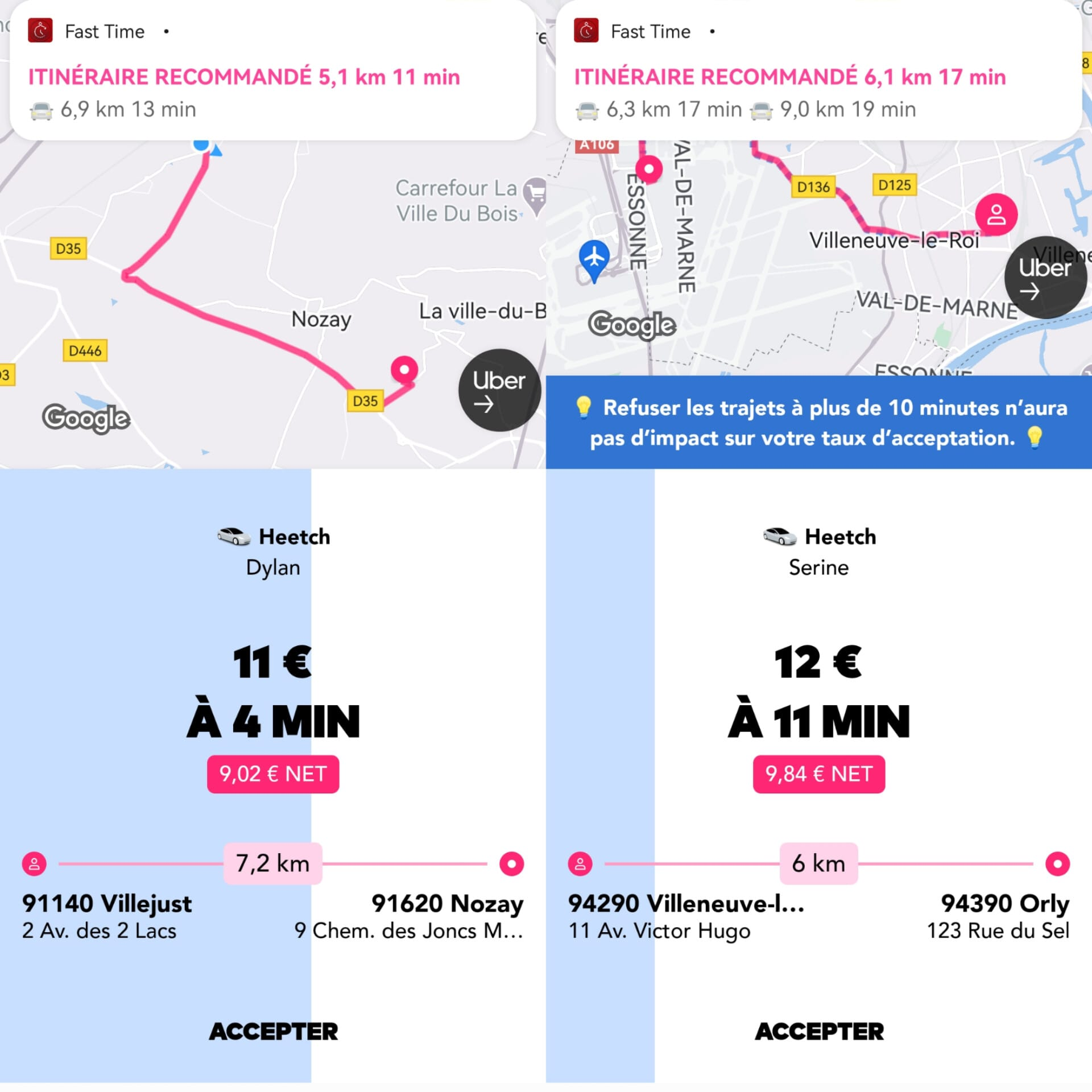 Vous aurez la possibilité d'accepter des courses rentables en prenant en compte le temps estimé de chaque trajet.