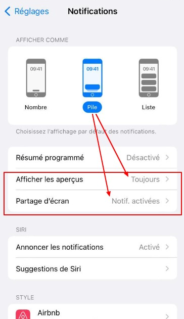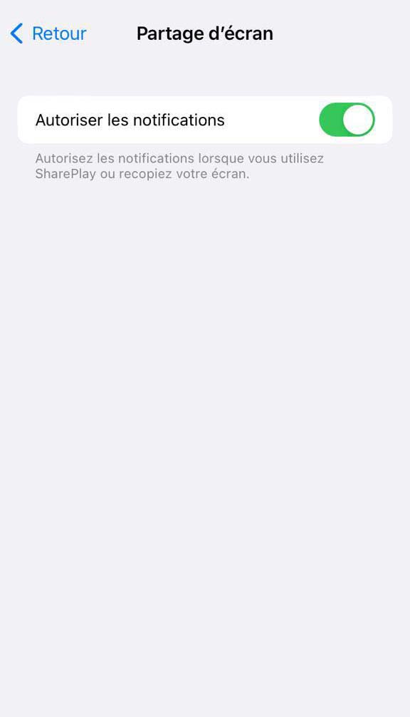 Autorisez les notifications lorsque vous utilisez SharePlay ou recopiez votre écran.